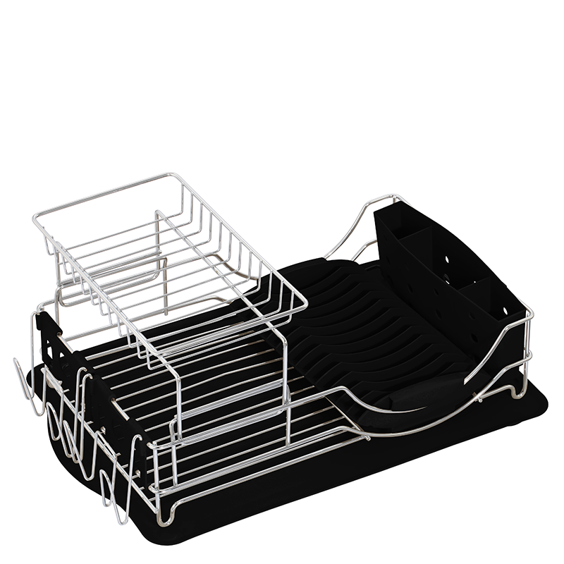 Escorredor para loiça. Cor: preto. Composição: plástico e metal cromado. Dimensões: 57X35.3X24.5cm Ref. EC 2101