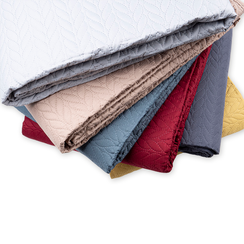 Colcha dupla face. Composição: 100% poliéster. Enchimento: 100g/m2. Cores disponiveis: Cinza Escuro/Cinza Claro/Bege/Bordô/Azul/Amarelo. Medidas Disponiveis: 180x260cm e 240x260cm. Ref. EC 38997 e 38998